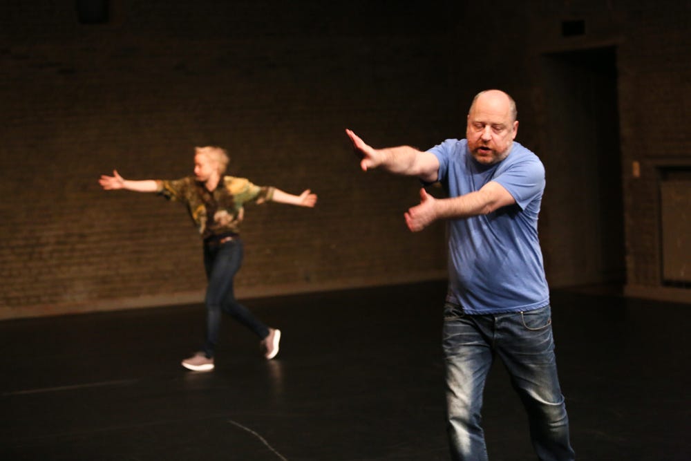 Това, което отличава „Shown and Told“ от стандартния пърформанс, е и специфичната динамика между двамата автори. Според моята интерпретация те представляват две различни „картини“ - две махала, които привидно се движат в различни посоки и представят себе си по съвсем различен начин. Двамата могат да се интерпретират самостоятелно само до един момент – момента на сблъсъка със собствената интерпретация на „картината на другия“. Тим Ечълс в по-голямата част от времето борави със слово, което едновременно интерпретира танца на Мег Стюарт, но и бива интерпретирано от нейните движения. Ако това упражнение продължи достатъчно дълго, двете махала постигат еквилибриум и произведението се превръща в неделим диптих, който не може да съществува само чрез единия участник.